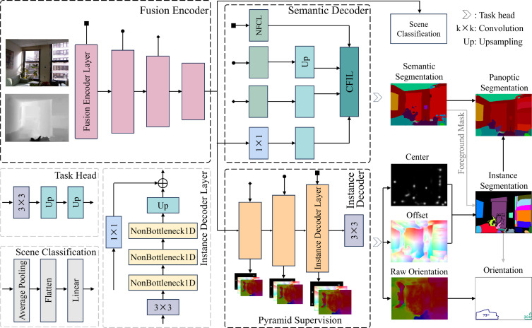 model that performs a range of tasks, including semantic segmentation, instance segmentation, orientation estimation, panoptic segmentation, and scene classification.
